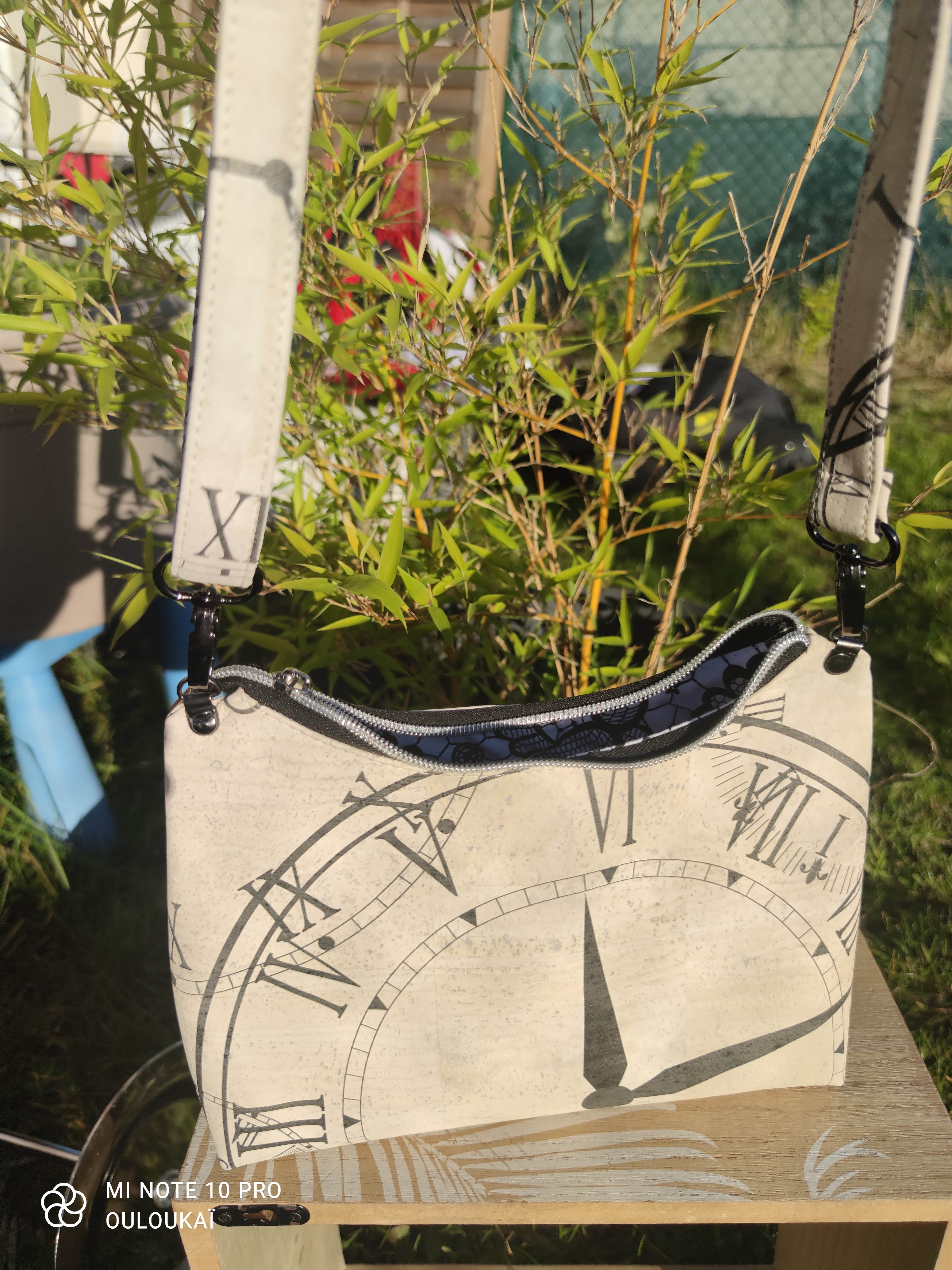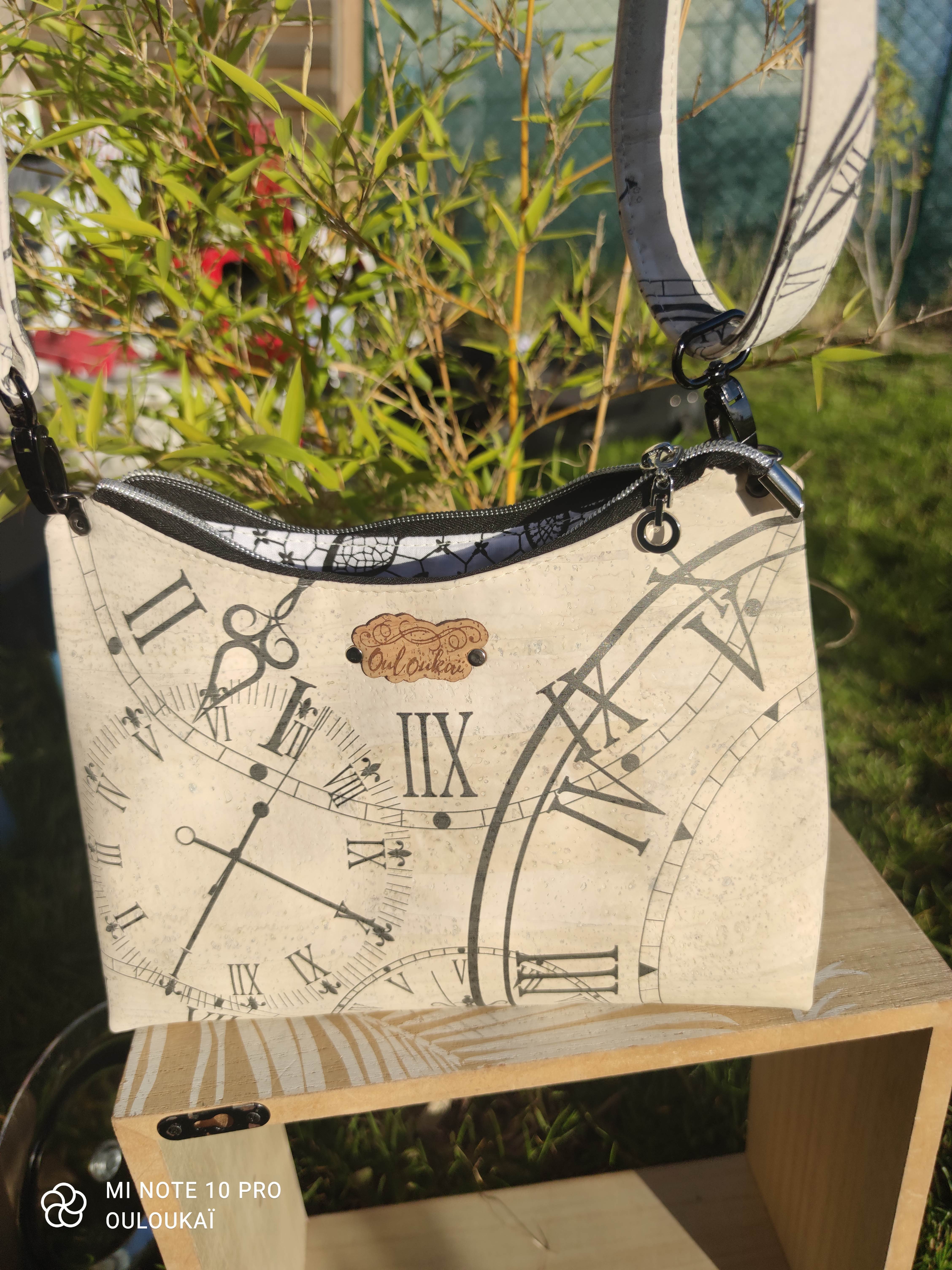 Sac baguette en Liège imprimé horloges